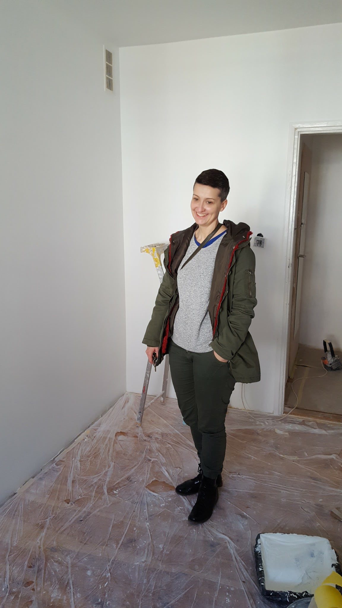 W tym pokoju trzeba było wymienić podłogę (jak i zresztą w sypialni i przedpokoju), naprawić rolety, pomalować ściany pozbyć się mebli.